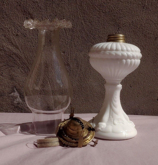 Antique 19th Century French Portieux Vallerysthal White Opaline Milk Glass Oil Lamp