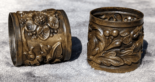 Antique Pair of Art Nouveau Floral Repousse Brass Napkin Serviette Rings