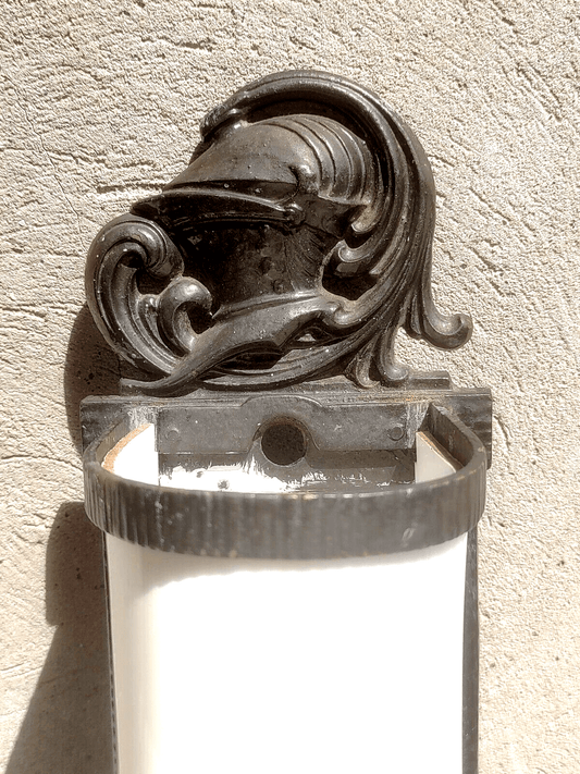 Vintage Art Deco Black Cast Iron / Brass Knight Wall Light Tube Lamp 38 cm