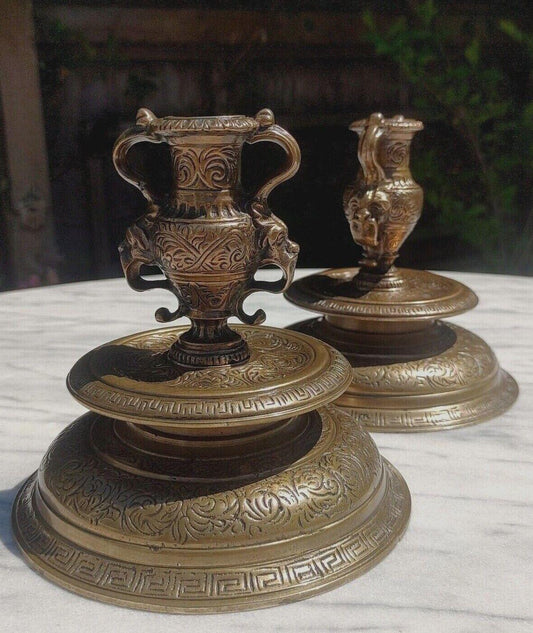 Pair of French Neoclassical Renaissance Style 19th Century Bronze Urn Candlestick Holders