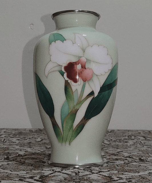 Japanese Ando Showa Sato Cloisonne Green Enamel Vase Mid 20th Century - 19 cm