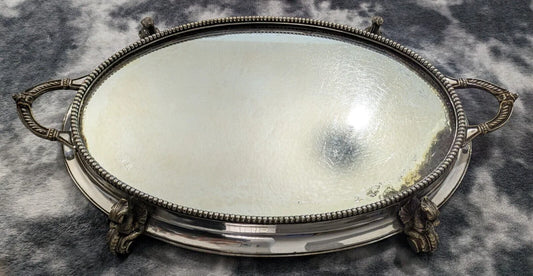 19th Century Victorian Oval Silver Plate Mirror Table Centerpiece Plateau Griffin Tray Antique 43 cm