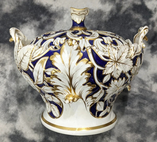Large & Rare Georgian Antique Royal Crown Derby Gilt Cobalt Tureen 19th Century