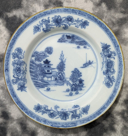 Antique 18th Century Chinese Blue & White Landscape Porcelain Plate Dish 23 cm