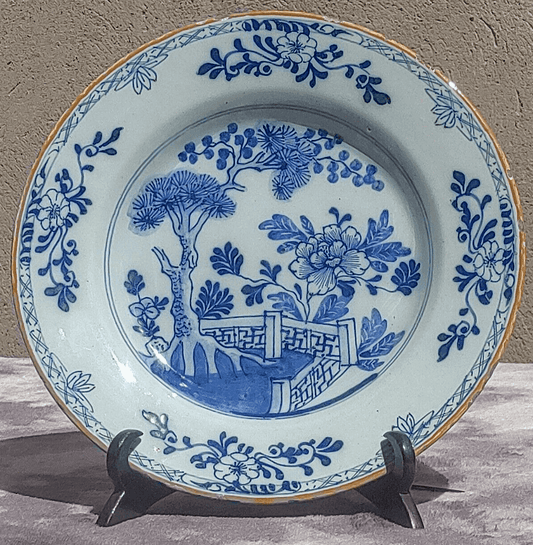 18th Century Dutch Delft Porceleyne Bijl Chinoiserie Ceramic Pottery Dish Plate