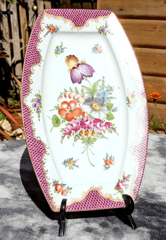 Antique German Dresden Hand Painted Porcelain Serving Plate Tray Platter - 28 cm