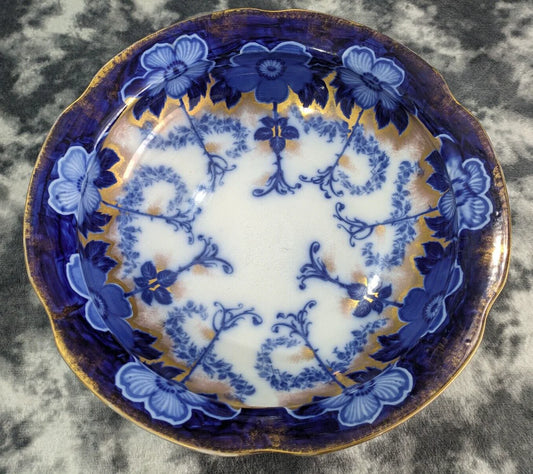 Rare Burgess and Leigh Middleport Briar Pattern Gilt Flow Blue Wash Bowl Basin Antique Edwardian Pottery Ceramic 42.5 cm
