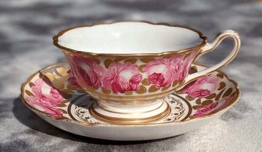 19th Century Paris Porcelain Antique Cup & Saucer Painted Gilt Billingsley Rose