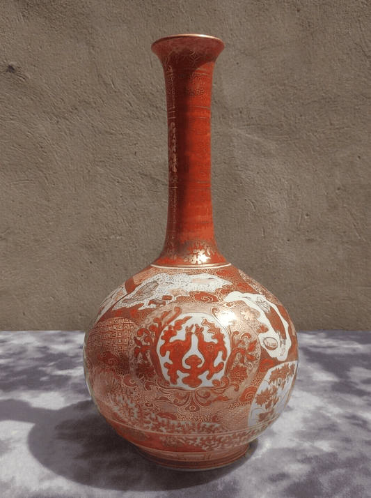 Large 19th Century Antique Japanese Meiji Kutani Porcelain Bottle Vase - 35 cm