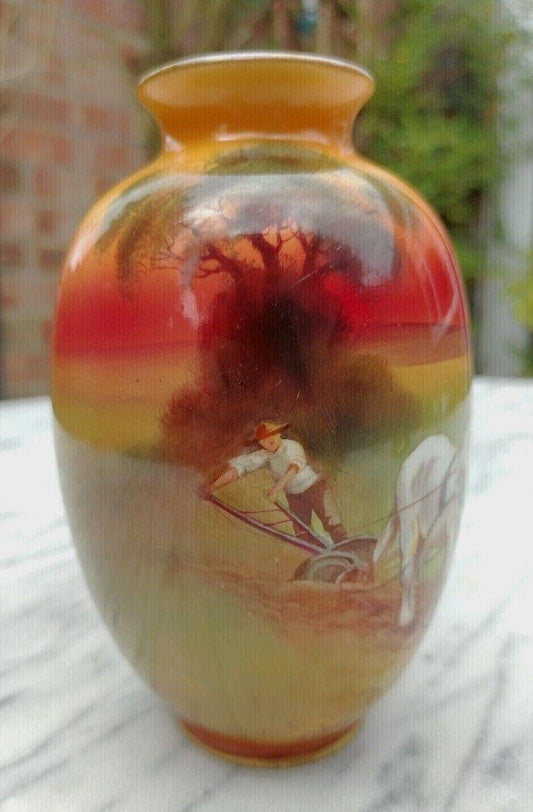 Royal Doulton Holbein Vase Hand Painted Ploughman & Horses by H.Morrey