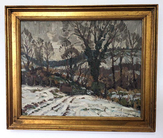 Edwin V Forrest British 20th Century Abstract Winter Landscape Oil Painting Art