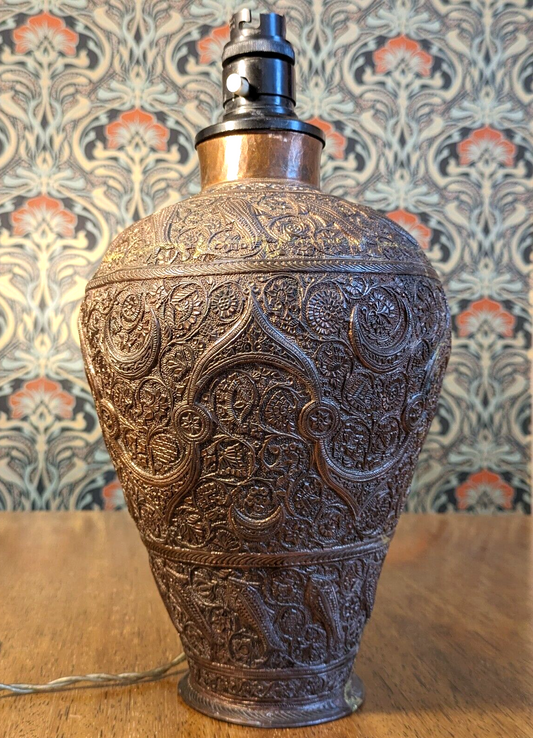 Rare 19th Century Indian Copper Kashmiri Mughal Islamic Fish Vase Lamp Antique