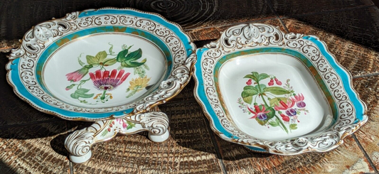19th Century Copeland Hand Painted Botanical Flower Tazza Centrepiece Compote