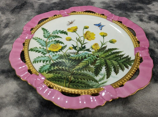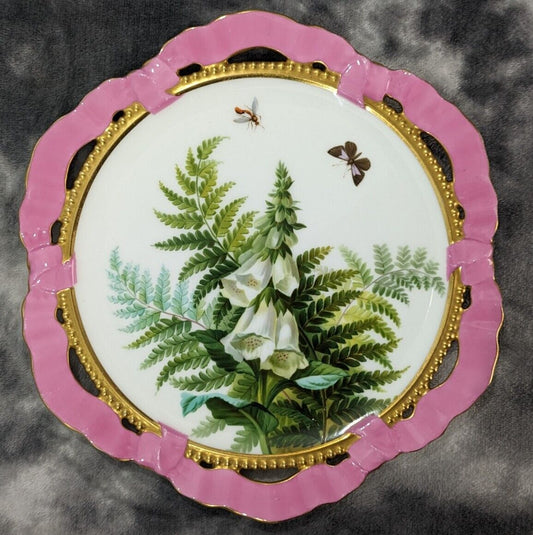 19th Century Brown Westhead Moore Hand Painted Butterfly Floral Ribbon Plate