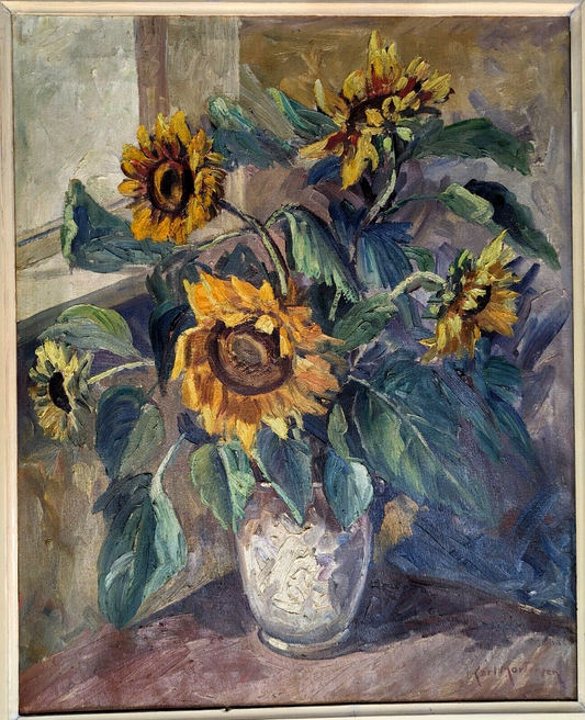 Carl Mortensen 1861-1945 Danish Antique Vintage Sunflower Still Life Oil Painting Art European Original