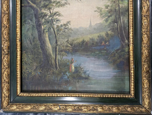 Antique 19th Century British Oil Canvas Painting Landscape River Northumberland