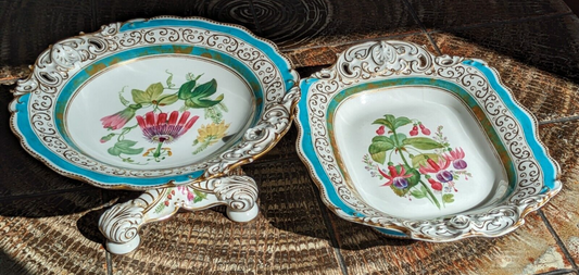 19th Century Copeland Hand Painted Botanical Flower Pottery Ceramic Tray Stand