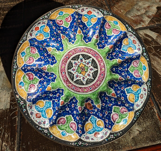 Persian 1900s Minakari Enamel on Copper Qajar Dynasty Antique Plate Dish