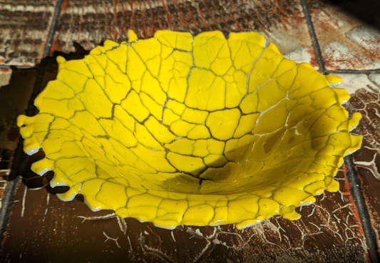 Vintage 20th Century Yellow Crackle Textured Fused Art Glass Bowl 18.5 cm