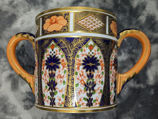 XL 19th Century Royal Crown Derby Imari 1128 Antique Porcelain Loving Cup 7 1/8"
