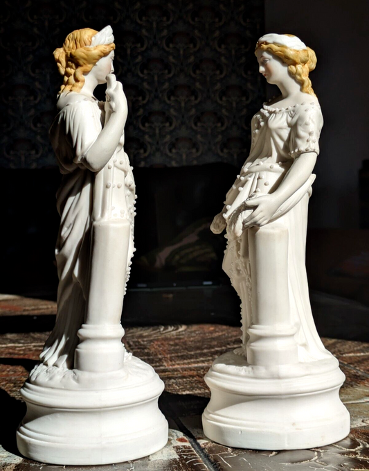 Rare Pair Victorian Parian Ware Classical Figures 19th Century Porcelain Antique