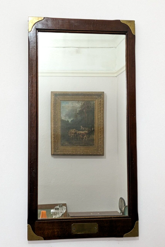 Antique Mahogany Brass Campaign Style Rectangular Wall Mirror 73.5 x 37.5 cm
