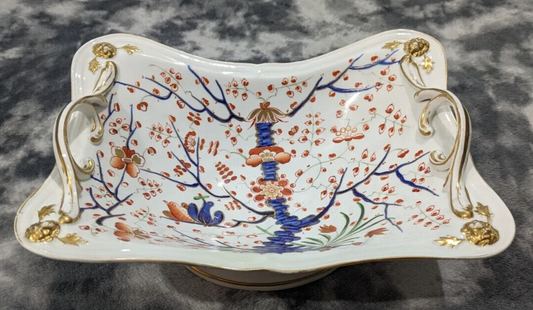 Georgian Antique Royal Crown Derby Porcelain Partridge Cherry Tree Imari Comport