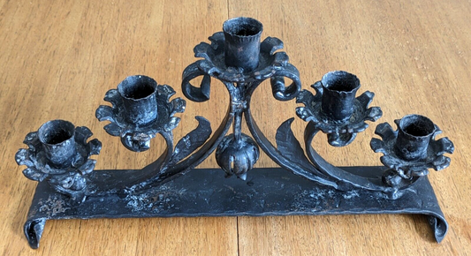 Antique Arts Crafts Art Nouveau Wrought Iron 5 arm Candelabra Candlestick Holder