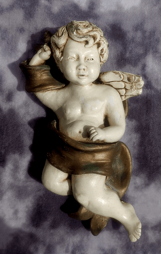 Vintage French Painted Pottery Cherub Angel Putti Wall Plaque Hanging - 29.5 cm