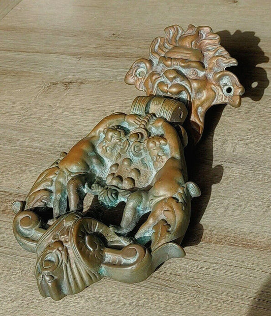 Italian Renaissance Grotesque Mask & Cherubs Medici Brass Door Knocker