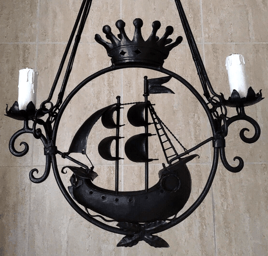 Italian 19th Century Antique Wrought Iron Nautical Sailing Ship Light Chandelier