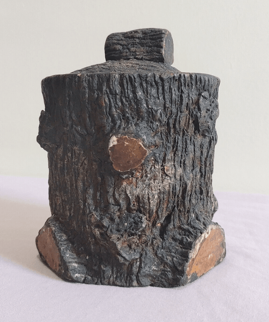 Antique Naturalistic Pottery Tree Trunk Stump Tobacco Jar Pot Black Forest Style