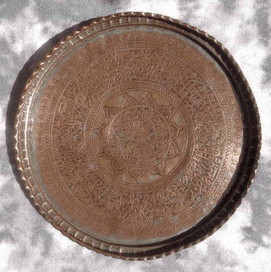 17th Century Antique Middle Eastern Turkish Ottoman Tinned Copper Charger Tray