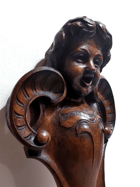 19th Century Baroque Wood Carving Cherub Putti Angel Wall Bracket Plaque