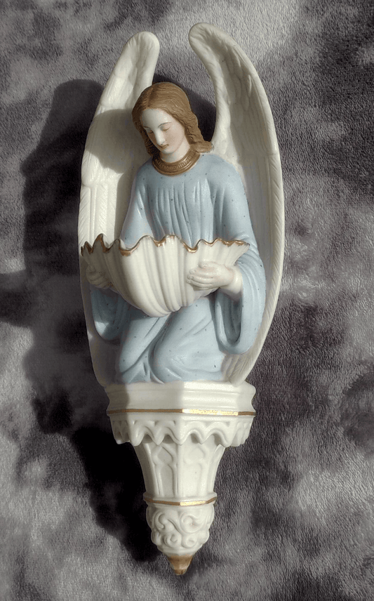 19th Century Holy Water Font Religious Irish Bisque Porcelain Angel
