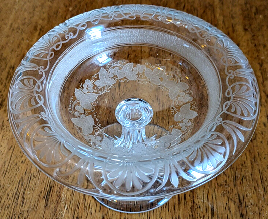Victorian 19th Century Cut & Etched Glass Comport Tazza Pedestal Bowl Antique