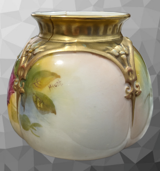 Antique Royal Worcester Hand Painted Floral Hadley Roses M. Hunt Gilt Vase A/F