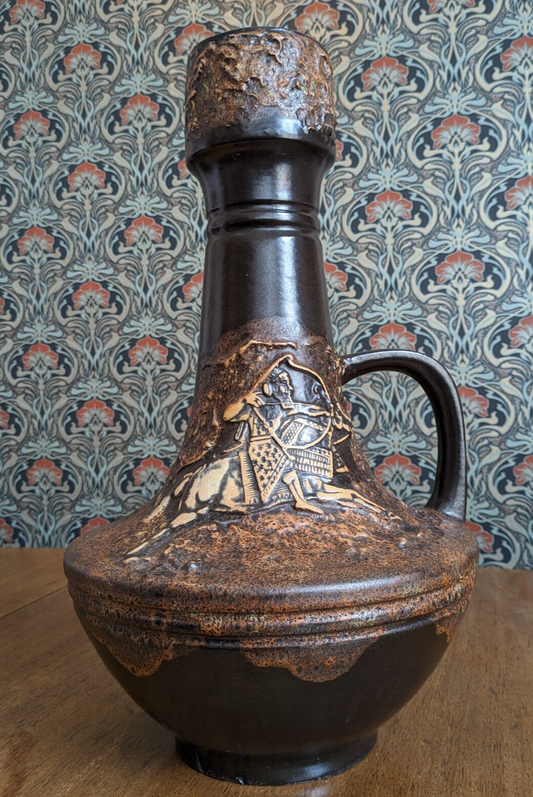 XL Mid Century West German Fat Lava Assyrian Lion Hunt Vase Jug Walter Gerhards