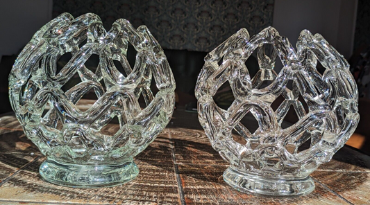 Vintage Lattice Clear Handblown Art Glass Centrepiece Bowl Sculpture Murano ?