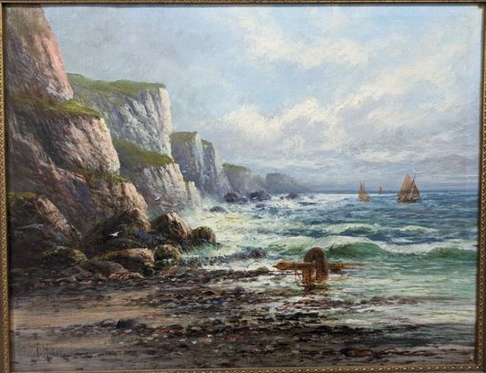Frank Hider 1861-1933 Antique British Marine Oil Painting Cornish Coast Art