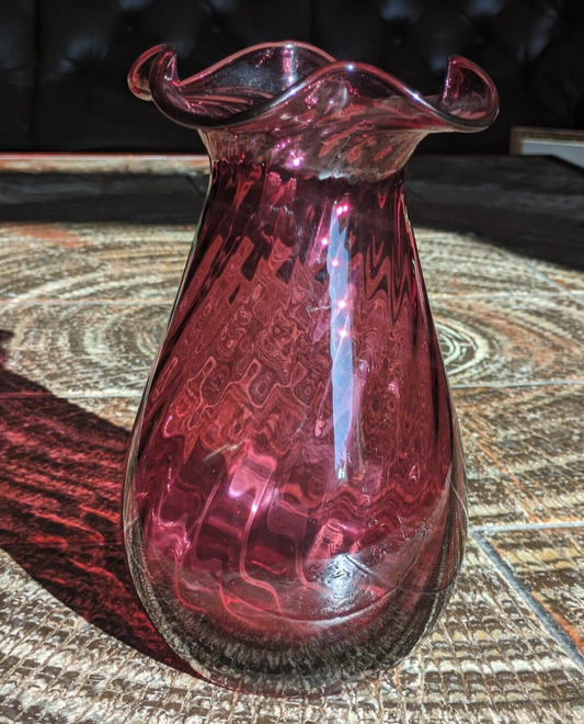 Vintage Dartington Crystal Cranberry Ruby Red Fluted Ruffled Glass Vase 20.5 cm