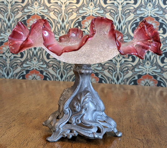 19th Century Bohemian Art Nouveau Cranberry Glass Tazza Centrepiece Bowl 22.5 cm