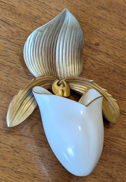 Rare 19th Century Royal Worcester English Porcelain Gilt Orchid Wall Pocket Vase