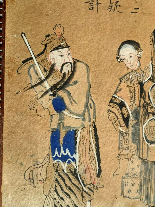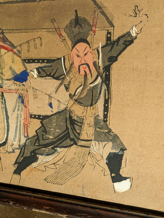 19th Century Chinese Qing Dynasty Peking Opera Framed Watercolour & Ink Painting