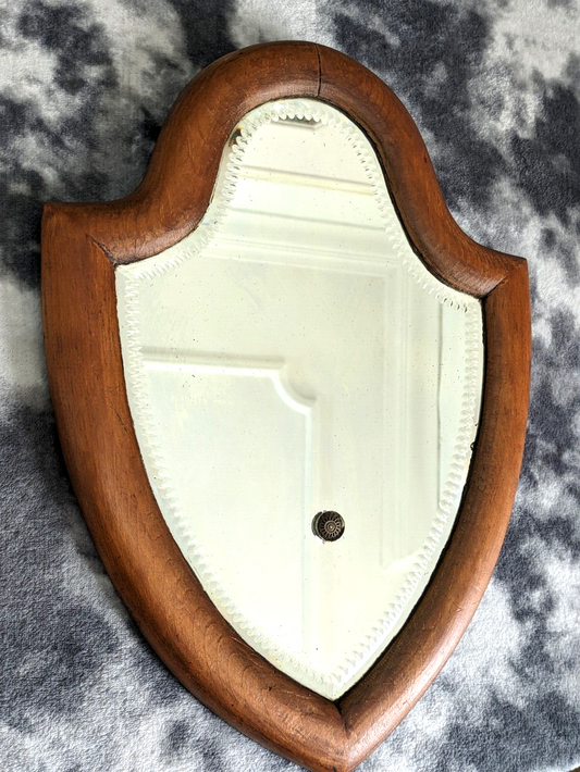 Victorian 19th Century Bevel Edged Faceted Yew Wood Shield Mirror London England