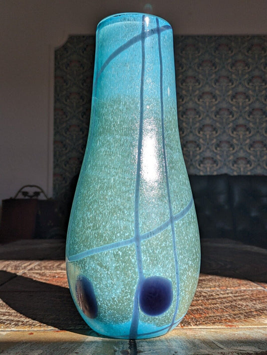 Large 20th Century Vintage Thick Art Glass Vase Speckled Blue 31 cm