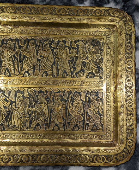 Large 19th Century Antique Persian Qajar Engraved Brass Tray Wall Art - 77.5 cm