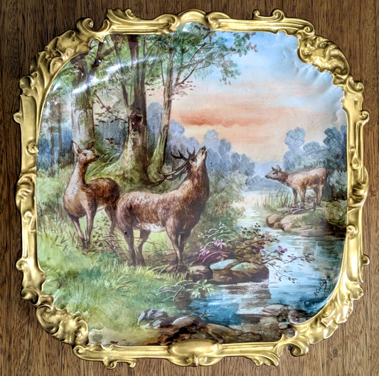 19th Century French Limoges Handpainted Stag Deer Porcelain Wall Plaque Charger