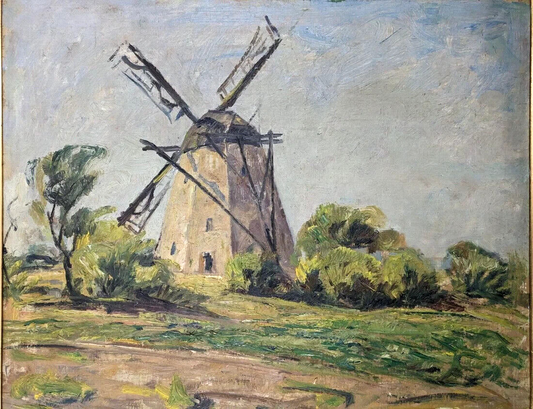 20th Century Danish Carl Schwenn Windmill Landscape Impressionist Oil Painting