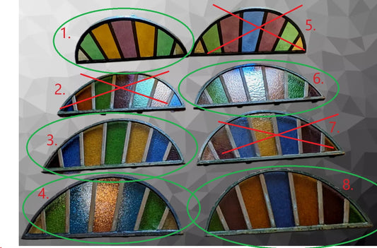 5x 19th Century Stained Glass Demi Lune Cast Iron Window Arch Panels